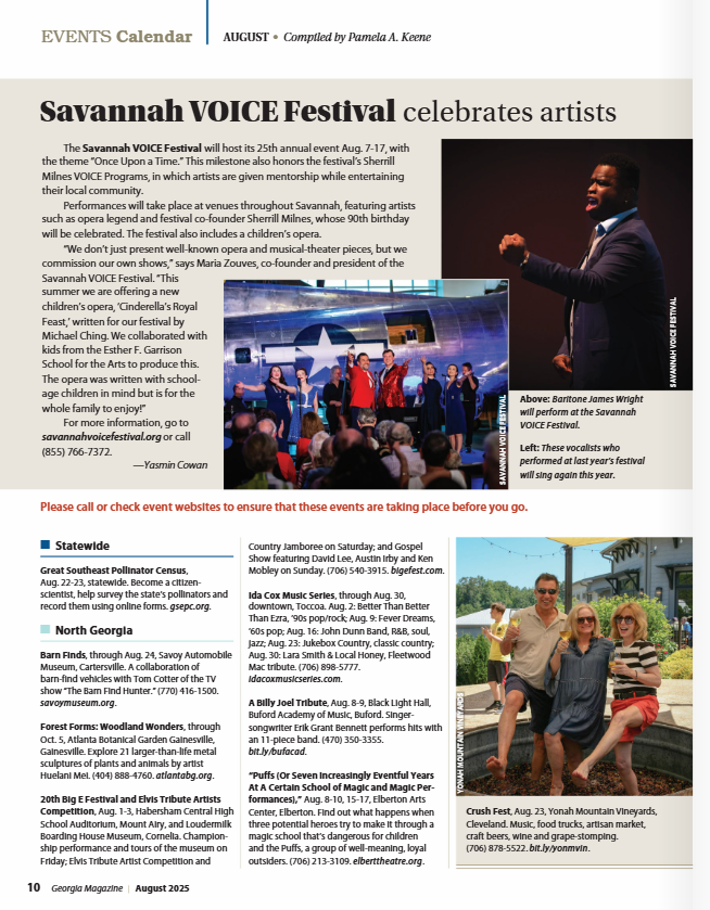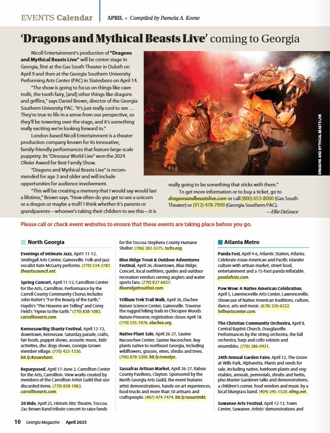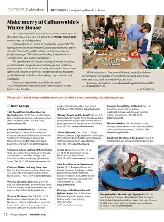 The following Calendar of Events listings have been provided by event venues, individual organizers and readers of Georgia Magazine.